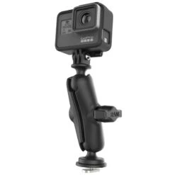 Track Ballâ„¢ Action Camera Mount consists of a Track Ballâ„¢ base, double socket arm and 1″ diameter ball with custom GoPro® Hero adapter. The mount is designed with a RAM 1″ diameter rubber ball and socket system that has adjustment points at both ends of the double socket arm – allowing for high adjustibility to achieve perfect viewing angles. The GoPro® Hero adapter attaches directly to the under-side of the camera, replacing the factory mounting bracket. This kit is compatible with virtually any track system including the RAM Tough-Trackâ„¢.