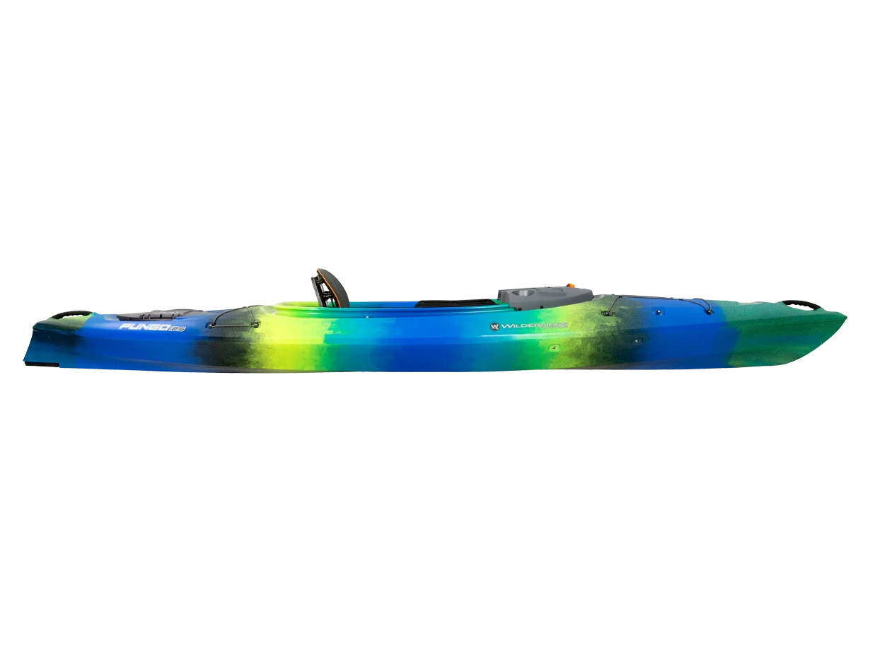 The patented Phase 3® AirPro seating system is the core of what makes Wilderness Systems the world’s most comfortable kayaks; the Pungo’s comfort and adjustability is built just for you, allowing you to be fully immersed in your on-water experience. The Pungo also integrates the most comprehensive kayak dashboard interface for optimal customization and features. It includes the removable DryTec dry box that allows you to take your valuables with you, two cup holders for your favorite beverage, a recess for the Wilderness Systems Lithium Battery (sold separately), SlideTrax ™ to hold mounts for phones, fishing rods and other accessories, and two mounting platforms for customized accessorizing. A protective and replaceable skid plate, comfortable rigid carry handles, industry-leading storage capabilities, and configurable deck bungee rigging rounds out a robust list of attributes.Â
